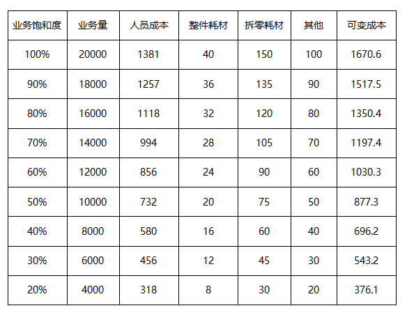 以下以滿負荷(100%)~20%負荷作為測算。見下表(每年費用):