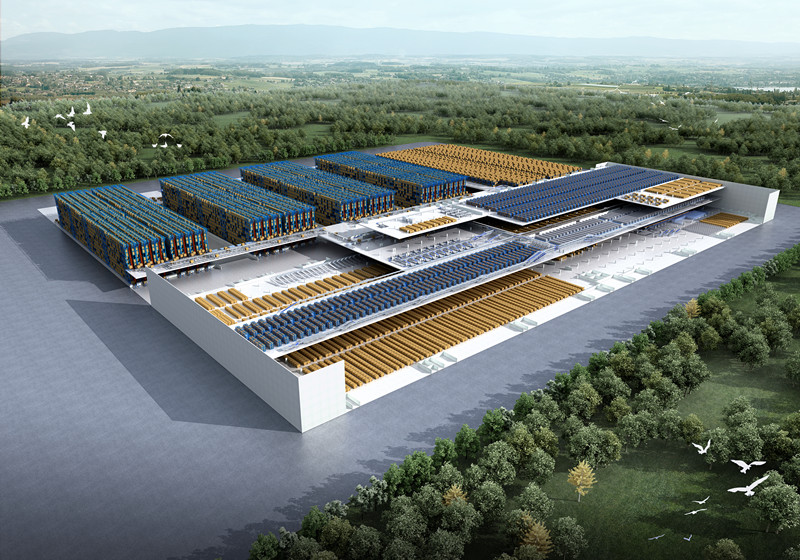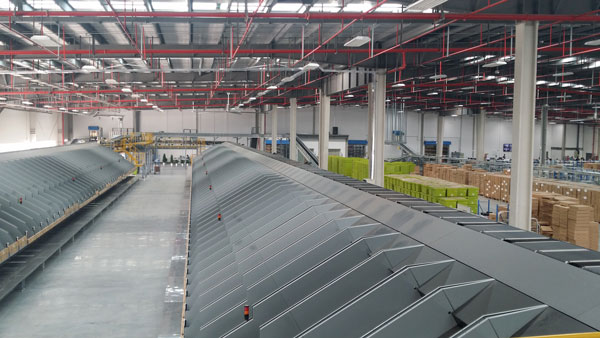 安踏晉江物流中心開創(chuàng)了我國建設(shè)大型服裝物流中心的新時(shí)代,由4棟建筑構(gòu)成,總建筑面積達(dá)到18萬平方米,規(guī)模宏大。其中鞋類采用AS/RS進(jìn)行儲存,服飾類采用VNA進(jìn)行儲存;揀選中心分為3層,配備有隔板式揀選、輸送系統(tǒng)和高速分揀系統(tǒng),分別完成B2B揀選發(fā)貨、B2C電子商務(wù)業(yè)務(wù)以及退貨處理。