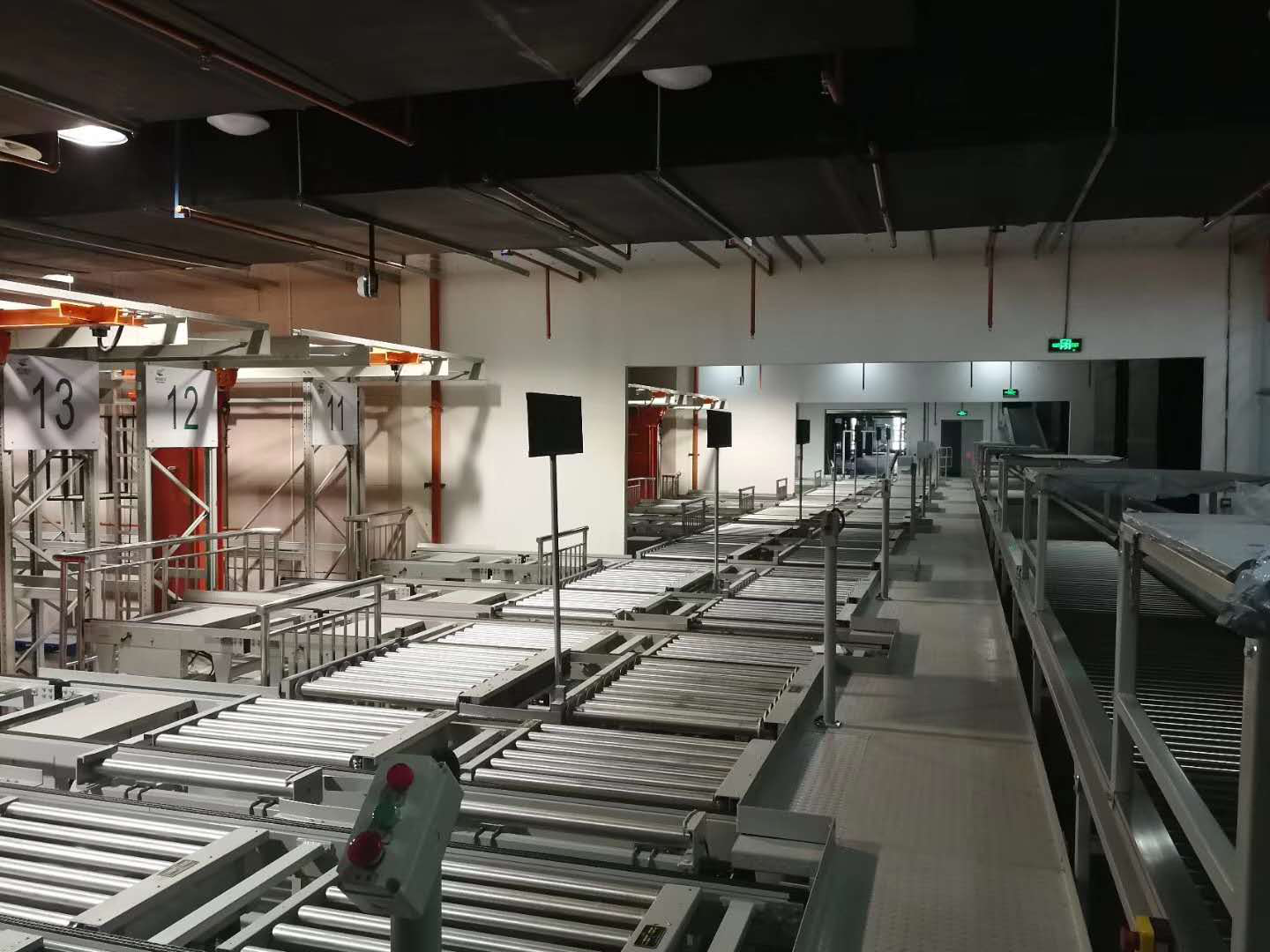 托盤提升機(jī):托盤提升機(jī)與一樓托盤輸送線相聯(lián),主要用于入庫的整托貨物搬運(yùn)至三至六層的托盤平置區(qū)。