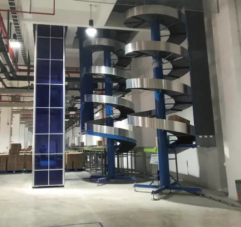 螺旋提升機被認為是最緊湊的提升機設備之一,且技術(shù)成熟,故障率低,運行平穩(wěn)。尤其是其輸送量大,每小時可以完成1500件以上的貨物輸送,解決了其它類型提升機跨樓層運輸能力不足的問題。在伍強智能科技的案例中,也有10年以上的應用。本配送中心項目充分利用螺旋提升機的特點,完成整件貨物和打包后的貨物從2~4樓到達一樓的快速輸送,成為項目的亮點之一。