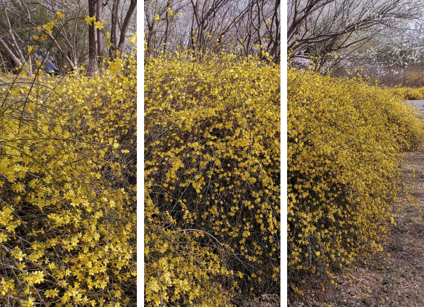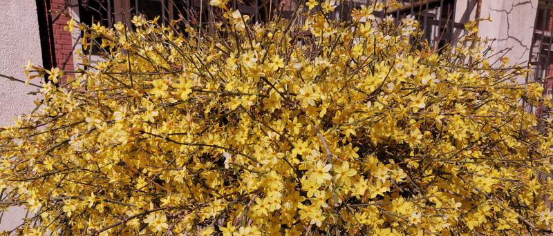 迎春花是一種灌木類的植物,每到春天來臨,總是第一個(gè)開花,因此也備受人們的喜愛。在公園里,或院子里,或馬路旁,總要種上一些,有的只有一株或一小叢,有的卻是一大片。黃色的小花,開始時(shí)是零零星星,它在刻意提醒人們,春天來了。這個(gè)時(shí)候,其它的花,還沒有開的影子,我猜這是迎春花招人喜愛的原因。被冬天壓抑太久了,人們對(duì)春的渴望就顯得尤其強(qiáng)烈。