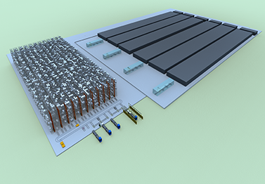 光伏產(chǎn)業(yè)在最近幾年時(shí)間里得到飛速發(fā)展,可分為光伏原材料如多晶硅、玻璃等以及光伏組件。大多數(shù)光伏產(chǎn)品是以整托形式出入庫(kù),其重量較重,尺寸較大,且存儲(chǔ)量一般較大,給自動(dòng)化物流設(shè)備帶來(lái)一定的挑戰(zhàn)。