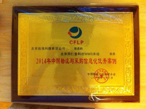 于7月3號晚上進(jìn)行的頒獎(jiǎng)儀式上,伍強(qiáng)科技為北京同仁堂科技自主研發(fā)、自主實(shí)施的WMS系統(tǒng)憑借著專業(yè)、實(shí)用、兼容等特點(diǎn)以及客戶的好評獲得“2014年中國物流與采購信息化優(yōu)秀案例”獎(jiǎng)。