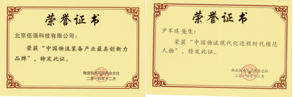 北京伍強(qiáng)科技有限公司總經(jīng)理尹軍琪等12位行業(yè)領(lǐng)袖榮獲2014中國(guó)物流現(xiàn)代化進(jìn)程時(shí)代模范人物大獎(jiǎng),伍強(qiáng)科技還榮獲2014中國(guó)物流裝備產(chǎn)業(yè)最具創(chuàng)新力品牌。這是一項(xiàng)具有廣泛權(quán)威的評(píng)獎(jiǎng)。再一次表明伍強(qiáng)科技在我國(guó)物流技術(shù)與裝備領(lǐng)域所取得成就已經(jīng)為行業(yè)廣大用戶和同行認(rèn)可,這是對(duì)伍強(qiáng)科技的巨大鞭策和鼓勵(lì)。