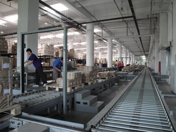 “貨到人”揀選系統(tǒng)采用固定揀選站模式,自動化立體庫將揀選托盤輸送到揀選工作站,計算機打印揀選標簽,人工將待揀選貨物從托盤上取出后放到旁邊的輸送線上,輸送線再自動將貨物送到分揀系統(tǒng)。整個系統(tǒng)僅設計了4個揀選工作站,工作效率提高6倍以上。