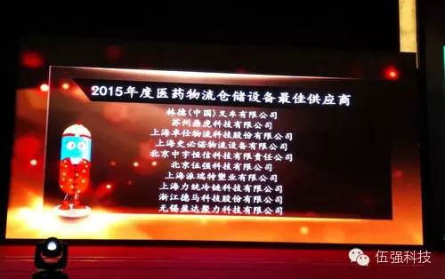 在晚宴上,由中國醫(yī)藥供應(yīng)鏈聯(lián)盟舉辦的2015年度醫(yī)藥物流系列評(píng)選活動(dòng)獲獎(jiǎng)名單公布,伍強(qiáng)科技榮獲“2015年度醫(yī)藥物流倉儲(chǔ)設(shè)備最佳供應(yīng)商”獎(jiǎng),伍強(qiáng)科技副總裁、市場部總經(jīng)理、銷售總監(jiān)渠曉通先生榮獲“2015醫(yī)藥物流年度風(fēng)云人物”。