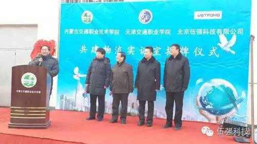 2016年1月15日,天津交通職業(yè)學(xué)院、內(nèi)蒙古交通職業(yè)學(xué)院、北京伍強(qiáng)科技有限公司三方在內(nèi)蒙古交通職業(yè)學(xué)院舉行“校-企-?!甭?lián)合建設(shè)物流實(shí)訓(xùn)室的揭牌儀式。內(nèi)蒙古交通職業(yè)學(xué)院黨委書(shū)記劉力山、院長(zhǎng)尚慶華、副院長(zhǎng)王建軍,天津交通職業(yè)學(xué)院院長(zhǎng)吳宗保、首席專(zhuān)家薛威教授,北京伍強(qiáng)科技有限公司總裁尹軍琪以及其他領(lǐng)導(dǎo)和師生60多人參加了揭牌儀式。